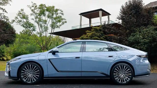 侧身采用了轿跑设计风格,溜背式车顶线条从B柱开始下滑,腰线采用分段式设计,并且设计的比较利落,弯折的下侧裙的线条很有个性,采用半隐藏式门把手和多辐式轮毂造型。新车长宽高分别是5140/1920/1555(1560)mm,轴距2950mm,相比现款车型有了全面的提升。尾部整体呈现内凹的设计,加入上翘的尾翼,贯穿式尾灯设计的比较细长,后包围设计的也很动感,还挺个性的。